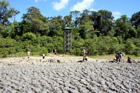 In the afternoon, trekking from the Elephant trail to the active Lipad mud valcano which provides a mineral salt lick for wildlife, arrive at the evelated bare area of the mud valcano which is frequented by wildlife and birds. Try to identify the multitude of animal footprints here. The adventurous can try the effects of the valcanic mud, said to be responsible for a fine comolexion. Trek from the mud valcano back to the main road
